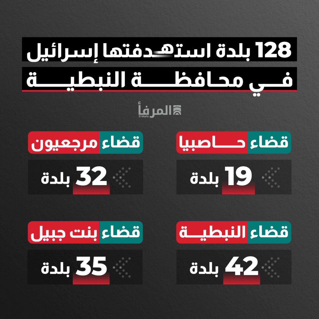 تضرّرت في قضاء النبطيّة 42 بلدة جرّاء العـ ـدوان الإسرائيلي على لبنان وهي: أرنون ، الدوير، الشرقية، القصيبة، الكفور،